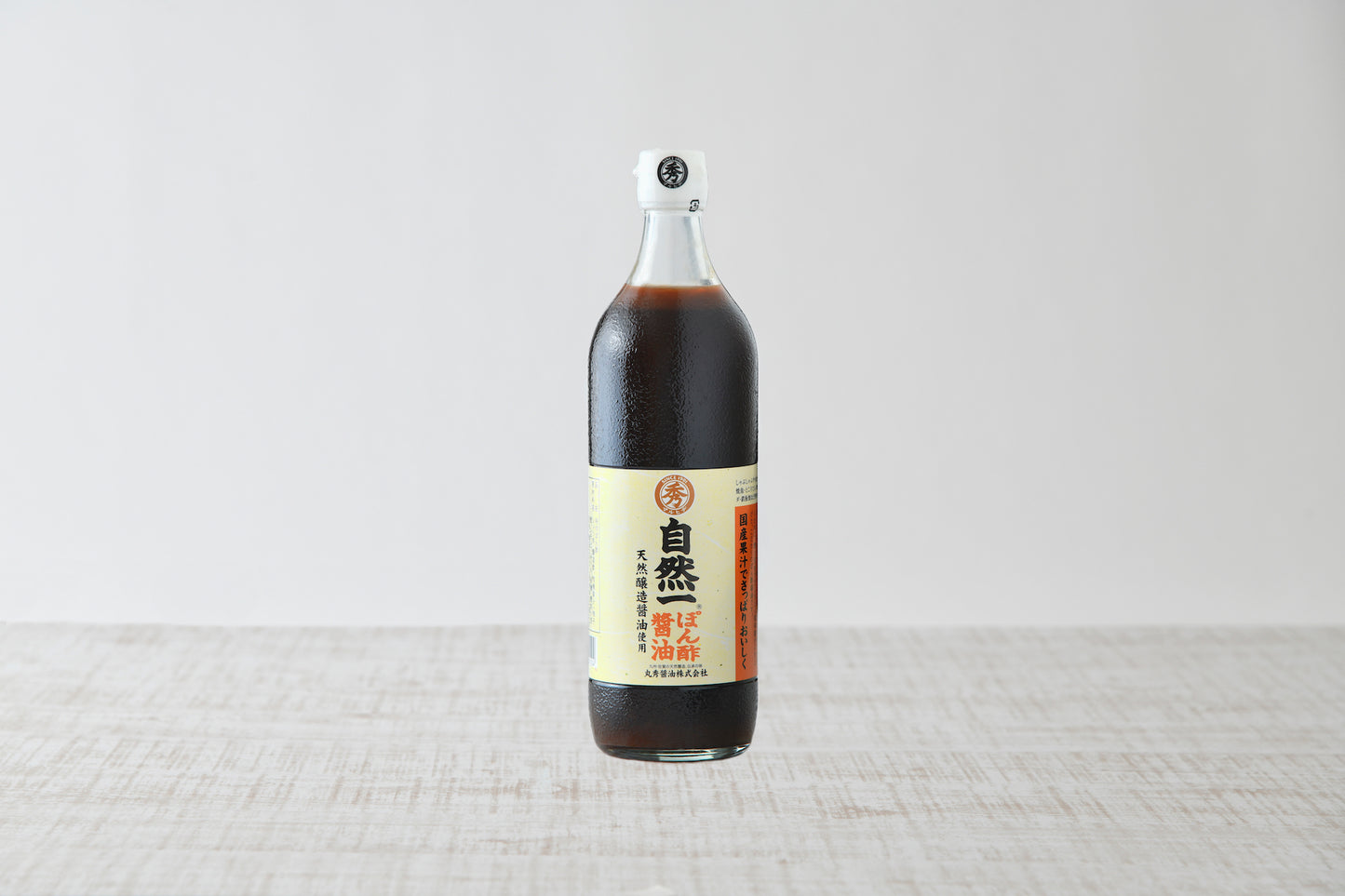 そんな丸秀醤油さんの、こだわりの麹で2年の歳月をかけて仕込んだ『自然一醤油』にふさわしい3種の天然果汁をブレンドした”本格派ぽん酢醤油”です。